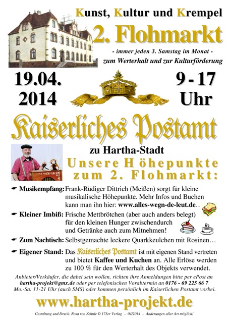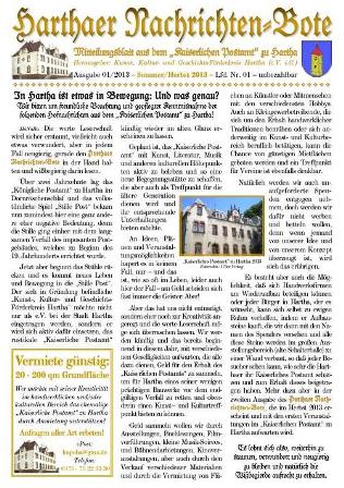 Die nächsten Infos zum Kunst- Kultur- und Geschichtsprojekt „Kaiserliches Postamt“ (auf dieser Homepage und dann im neuen Gewand) gibt es hier zum 790. Jubiläum der Ersterwähnung Harthas am 30. September 2013! SUCHE! SUCHE! SUCHE!